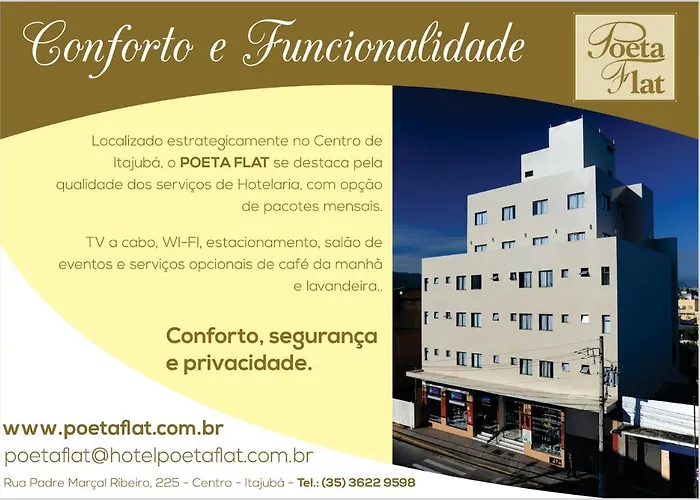 Providing 24 rooms, the 3-star Hotel Poeta Flat Itajuba is 2.7 km from Lago do Parque Municipal de Itajuba.